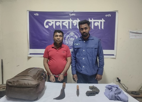নোয়াখালীর সেনবাগ উপজেলার অজুনতলা ইউপির ইদিলপুর গ্রামে ঘরে ঢুকে সাবেক স্বামী কর্তৃক স্ত্রী, কন্যা ও শাশুড়িকে কুপিয়ে হত্যার চেষ্টার মামলার প্রধান অভিযুক্ত আমির হোসনে (৫০)কে গ্রেপ্তার করেছ সেনবাগ থানা পুলিশ। বুধবার বিকেলে তথ্য-প্রযুক্তির সহায়তায় মামলার তদন্তকারী কর্মকর্তা এসআই মোঃ ওমর ফারুক মিয়া ও এএসআই মোঃ আশরাফুল ইসলাম দিপুর নেতৃত্বে সঙ্গীয় পুলিশ ফোর্স চট্টগ্রামের বাকলিয়া থানাধীন চাক্তাই এলাকার হোটেল আল-সিরাজের সামনে থেকে তাকে গ্রেপ্তার করে। এ সময় আসামীর দেওয়ার তথ্যের ভিত্তিতে ওই হোটেলের ২য় তলায় রক্ষিত অসামীর ব্যবহৃত ব্যাগের ভিতর তল্লাশী করে কাপড় মোড়ানো হামলায় ব্যবহৃত ধারালো দা ও ছুরি উদ্ধার করা হয়। এরপর রাতেই তাকে সেনবাগ থানায় নিয়ে আসে পুলিশ। বৃহস্পতিবার (২২ফেব্রুয়ারি) সকালে গ্রেপ্ত্রাকৃত আসামি আমির হোসনকে নোয়াখালী বিচারিক আদালতে প্রেরণ করা হয়। এরআগে ওই মামলার ২নং আসামি ভিকটিমের ভাসুর বেলালকে গ্রেপ্তার করে আদালতে প্রেরণ করে সেনবাগ থানা পুলিশ। গ্রেপ্তার আমির হোসেন (৫০) ও বেলাল (৫৫) পাশ্ববর্তী সোনাইমুড়ী উপজেলার অম্বরনগর গ্রামের এতিম আলী জমাদার বাড়ির সফি উল্লাহ ছেলে। ওই হামলার ঘটনাটি ঘটেছে শুক্রবার (১৬ ফেব্রুয়ারি) ভোর সাড়ে ৫টার দিকে উপজেলার অর্জুনতলা ইউনিয়নের ২নম্বর ওয়ার্ডের ইদিলপুর গ্রামের ফাতেমার নতুন বাড়িতে ঘটনায় গুরুত্বর আহত দু'জনকে আশঙ্কাজনক অবস্থায় ঢাকা মেডিকেল কলেজ হাসপাতালে চিকিৎসা দেওয়া হচ্ছে। ভুক্তভোগীর অভিযোগ সুত্রে জানাগেছে, বিগত ২৬ বছর আগে পারিবারিক ভাবে সোনাইমুড়ীর উপজেলার অম্বরনগর গ্রামের আমির হোসেনর সাথে সেনবাগের ইদিলপুর গ্রামের ফাতেমা বেগমের বিয়ে হয়। কয়েক বছর পর তাদের সংসারে কলহ দেখ দেয়। তিন বছর আগে তাদের মধ্যে ছাড়াছাড়ি হয়ে যায়। এরপর ফাতেমা দুই ছেলে ও এক মেয়েকে নিয়ে বাবার বাড়ির পাশে ইদিলপুর গ্রামে নতুন বাড়ি করে বসবাস শুরু করে। জানাগেছে, শুক্রবার ১৬ ফেব্রুয়ারী ভোর ৫টারদিকে আমির হোসেন তার সহযোগীকে নিয়ে সাবেক স্ত্রী ফাতেমার মুরগীর ঘর ও বসতঘরের ভেড়ার টিন এলো পাথাড়ী কুপিয়ে তছনছ শুরু করে। এ সময় টিনের শব্দের আওয়াজ শুনে ফাতেমা ও তার মেয়ে দরজা খোলা মাত্র আমির হোসেন ধারালো দা ও ছোরা নিয়ে নিয়ে আকস্মিক তাদের ঘরে ঢুকে এলোপাতাড়ি কুপিয়ে সাবেক স্ত্রী ফাতেমা, শাশুড়ি মাফিয়া বেগম ও তার মেয়ে রাবেয়াকে হত্যার চেষ্টা চেষ্টা চালায়। এ সময় তাদের চিৎকারে প্রতিবেশীরা এগিয়ে এলে সে পালিয়ে যায়। পরে স্থানীয় লোকজন তাদের উদ্ধার করে প্রথমে ২৫০ শয্যা বিশিষ্ট নোয়াখালী জেনারেল হাসপাতালে নিয়ে যায়। সেখানে প্রাথমিক চিকিৎসা শেষে মুমুর্ষ অবস্থায় মাফিয়া বেগম ও 