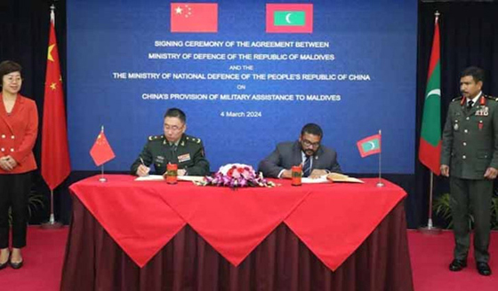 ভৌগলিক দিক দিয়ে কৌশলগতভাবে গুরুত্বপূর্ণ দ্বীপমালার দেশ মালদ্বীপ তাদের ভূখণ্ড থেকে ভারতীয় সেনাদের চলে যেতে বলার পর এবার চীনের সঙ্গে ‘সামরিক সহযোগিতা’র চুক্তি স্বাক্ষর করেছে। ইতোমধ্যে দেশটিতে মোতায়েন ৮৯ জন ভারতীয় সৈন্যকে আগামী ১০ মার্চের মধ্যে চলে যাওয়ার নির্দেশ দিয়েছে গতবছরের শেষভাগে ক্ষমতায় আসা মোহামেদ মুইজ্জুর নেতৃত্বাধীন সরকার। এই নির্বাচনে চীনপন্থি মোহামেদ মুইজ্জু ভারতবিরোধী প্রচারণা চালিয়ে ভোটের মাধ্যমে ক্ষমতায় আসেন। খবর এএফপি। মালদ্বীপের প্রতিরক্ষা মন্ত্রণালয় জানিয়েছে, গতকাল সোমবার বেইজিংয়ের সঙ্গে এই চুক্তি স্বাক্ষর হয়। এই চুক্তি অনুসারে মালদ্বীপ কোনো রকম চার্জ ছাড়াই সম্পূর্ণ বিনামূল্যে চীন থেকে সামরিক সহযোগিতা পাবে। প্রতিরক্ষা মন্ত্রণালয় সামাজিক যোগাযোগ মাধ্যম এক্সে এক পোস্টে জানায়, দ্বিপাক্ষিক বন্ধনকে আরও শক্তিশালী করতেই চীনের সঙ্গে চুক্তিটি স্বাক্ষর করা হয়েছে। এক হাজার ১৯২টি ছোট ছোট দ্বীপ নিয়ে ৮০০ কিলোমিটার এলাকা জুড়ে বিস্তৃত মালদ্বীপে চীনের বাড়ন্ত উপস্থিতিকে ভারত বেশ সন্দেহের চোখেই দেখে। একই ধরনের ঘটনায় আরেক প্রতিবেশী শ্রীলঙ্কার বিষয়েও দেশটি সন্দিহান। পূর্ব-পশ্চিম জুড়ে বিস্তৃত আন্তর্জাতিক নৌপথে কৌশলগতভাবে এই দুটি রাষ্ট্রের অবস্থান। গত বছরের সেপ্টেম্বরে মোহামেদ মুইজ্জু নির্বাচনে জয়ী হয়ে আসার পর থেকেই মালে ও নয়াদিল্লির সম্পর্কে টানাপোড়েন শুরু হয়। নয়াদিল্লি ভারত মহাসাগরের এই দ্বীপদেশকে নিজেদের প্রভাব বলয়ে রাখতে চাইলেও মালদ্বীপ সম্প্রতি তার সবচেয়ে বড় ঋণপ্রদানকারী দেশ চীনের প্রতি ঝুঁকে পড়ে। গত জানুয়ারিতে বেইজিং সফরের সময় মোহামেদ মুইজ্জু চীনের সঙ্গে অবকাঠামো, জ্বালানি, কৃষি ও নৌচলাচল বিষয়ে বেশ কয়েকটি চুক্তি স্বাক্ষর করেন। এ প্রসঙ্গে চীনের পররাষ্ট্র মন্ত্রণালয়ের মুখপাত্র মাও নিং গতকাল মঙ্গলবার সাংবাদিকদের বলেন, বেইজিং দ্বীপমালাটির সঙ্গে কৌশলগত অংশীদারত্ব জোরদারে সর্বাত্মক প্রচেষ্টা চালিয়ে যাচ্ছে এবং এক্ষেত্রে কোনো তৃতীয় পক্ষের হস্তক্ষেপকে মেনে নেওয়া হবে না।
