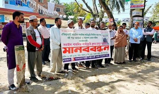 গত ১০ বছরেরও অধিক সময় ধরে তালাবদ্ধ সরাইল উপজেলার একমাত্র গণগ্রন্থাগারটি চালুর দাবিতে মানববন্ধন করেছেন উদীচী শিল্পী গোষ্ঠী সরাইল শাখা। গতকাল রোববার সকালে সরাইল সদরের শহিদ মিনার চত্বরে স্থানীয় সাহিত্যিক সাংস্কৃতিক সুশিল সমাজের ব্যক্তিবর্গের অংশ গ্রহনে এ মানববন্ধন কর্মসূচি পালিত হয়েছে। দীর্ঘ সময় ধরে গ্রন্থাগারটির কমিটি না থাকার কারণে এমন অচলাবস্থা তৈরী হয়েছে বলে জানিয়েছেন সংশ্লিষ্টরা। স্থানীয় একাধিক সূত্র জানায়, ১৯৭৯ খ্রিষ্টাব্দে স্থাপিত ঐতিহ্যবাহী এই গ্রন্থাগারটি এক সময় এলাকার শিক্ষক, শিক্ষার্থী, কবি, সাহিত্যিক, সাংবাদিক ও সাংস্কৃতিক ব্যক্তিদের পদচারণায় মুখরিত ছিল। দিনে রাতে আলো ছড়াতো গ্রন্থাগারটি। কিন্তু হঠাৎ করে এক সময় ছন্দ হারিয়ে ফেলে গ্রন্থাগারটি। দীর্ঘদিন পরিত্যক্ত অবস্থায় পড়ে থাকে। ২০১২ খ্রিষ্টাব্দে তৎকালীন ইউএনও’র প্রচেষ্টায় কমিটি হয়। সচল হয় গ্রন্থাগারটি। এ কমিটির মেয়াদ শেষ হলে আবারও তালাবদ্ধ হয়ে পড়ে। এ অবস্থায় কেটে যাচ্ছে ১০ বছর। ফলে গ্রন্থাগারে রক্ষিত সহস্রাধিক মূল্যবান বই গুলোতে পোকায় ধরেছে। কিছু বইয়ের উপরে পড়েছে ধূঁলোবালির স্তুপ। সন্ধ্যার পর গ্রন্থাগারটির চারিদিকে বিরাজ করে ভূতুড়ে অবস্থা। সুযোগে মাদকাসক্তরা সেখানে আড্ডায় মেতে ওঠে। তাই উপজেলার একমাত্র গ্রন্থাগারটির প্রাণ ফিরিয়ে আনতে সংশ্লিষ্টদের চোখ ফিরাতে মানববন্ধন কর্মসূচি পালন করেছেন স্থানীয় উদীচী। উদীচী সরাইল শাখার সভাপতি মো. মোজাম্মেল পাঠানের সভাপতিত্বে অনুষ্ঠিত মানববন্ধনে বক্তব্য রাখেন- উদীচী জেলা শাখার সহসভাপতি আহমদ হোসেন, সম্পাদক ফেরদৌস আহমেদ, সরাইল পাইলট বালিকা উচ্চ বিদ্যালয়ের সাবেক প্রধান শিক্ষক মো. আইয়ুব খান, কমিউনিষ্ট পার্টি সরাইল শাখার সভাপতি দেবদাস সিংহ রায়, ঠিকাদার মো. শফিকুল ইসলাম সেলু, শিক্ষক মো. সামছুল আলম, সরাইল প্রেসক্লাবের সম্পাদক তৌফিক আহমেদ তফছির, উপলদ্ধির নির্বাহী পরিচালক ও সাংবাদিক মো. শরীফ উদ্দিন ও শিল্পী মাহফুজা বেগম। বক্তারা বলেন, দ্রƒততম সময়ের মধ্যে যোগ্য লোকদের দ্বারা কমিটি গঠন করে গ্রন্থাগারটির তালা খুলে সচলাবস্থা ফিরিয়ে আনুন। মানুষ গ্রন্থাগারে আসুক। বই পড়ুক। সাহিত্য চর্চা হউক। নজরূল রবীন্দ্র জয়ন্তী হউক। সাংস্কৃতিক চর্চা বৃদ্ধি পাক।