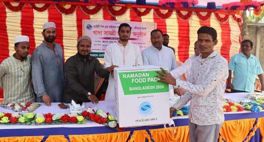 কুষ্টিয়ার দৌলতপুর উপজেলার আল্লারদর্গা নুরুজ্জামান বিশ্বাস কলেজ মাঠ প্রাঙ্গনে গতকাল বিকেলে ২৫০ দুস্থ ও অসহায় পরিবারে মাঝে রমজান উপলক্ষে চ্যারিটি পিচ এন্ড স্মাইলের খাদ্য সামগ্রীর প্যাকেট বিতরণ করা হয়েছে। এ উপলক্ষে আয়োজিত অনুষ্ঠানে চ্যারিটি পিচ এন্ড স্মাইলের চেয়ারম্যান শাহনে ওয়াজ টিটুর সভাপতিত্বে প্রধান অতিথি থেকে এ খাধ্য সামগ্রী দুস্থ পরিবারের সদস্যদের হাতে তুলেদেন দৌলতপুর উপজেলা নির্বাহী কর্মকর্তা মোঃ ওবায়দুল্লাহ এ সময় বিশেষ অতিথি হিসেবে উপস্থিত ছিলেন হোগলবাড়ীয় ইউপির চেয়ারম্যান সেলিম চৌধুরী, আল্লারদর্গা বাজার কমিটির সভাপতি হাবিবুর রহমানলসকর, যুবলীগ নেতা রোকনুজ্জামান স্বপন সহ অন্যান্যরা উপস্থিত ছিলেন।