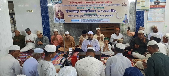 ব্রাহ্মণবাড়িয়ার নাসিরনগর উপজেলার ঐতিহ্যবাহী ফান্দাউক দরবার শরীফের পীরে কামেলে মোকাম্মেল মোজাদ্দেদে জামান হুজুর কিবলা ফান্দাউকী(রহ:)এর সহধর্মিনী ও বর্তমান গদ্দীনিশীন পীর সাহেবের মমতাময়ী মা সৈয়দা জাকিয়া আল-হোসাইনী এর উফাত দিবস উপলক্ষে ইফতার মাহফিল অনুষ্ঠিত হয়েছে। আজ শনিবার ফান্দাউক দরবার শরীফের উদ্যোগে ফান্দাউক দরবার শরীফ মসজিদে বর্তমান গদ্দীনিশীন পীরজাদা মূফতি সৈয়দ সালেহ আহমাদ মামুন আল-হোসাইনীর সভাপতিত্বে দরবার শরীফের পীরজাদা মাওলানা মুফতি সৈয়দ মঈনুদ্দিন আহমাদ আল-হোসাইনী,পীরজাদা মাওলানা সৈয়দ আবুবক্কর সিদ্দিকী আল-হোসাইনী,পীরজাদা মাওলানা সৈয়দ বাকের মোস্তুফা আল-হোসাইনীর সার্বিক তত্ত্বাবধানে ইফতার মাহফিলে সাবেক উপজেলা চেয়ারম্যান এটিএম মনিরুজ্জামান সরকার,হরিপুর ইউপি চেয়ারম্যান মো: ফারুক মিয়া,ছাতিয়াইন ইউপি চেয়ারম্যান মিনহাজ উদ্দিন কায়েস চৌধুরী,নোয়াপাড়া ইউপি চেয়ারম্যান মো:আতাউল মোস্তুফা সোহেল চৌধুরী,মুড়াকুড়ি ইউপি চেয়ারম্যান আবুল কাসেম মোল্লা ফয়সাল,বামৈ ইউপির সাবেক চেয়ারম্যান মাহফুজুল আলম,উপজেলা আওয়ামীলীগ সাধারণ সম্পাদক মো: লতিফ হোসেন,উপজেলা বিএনপির সাংগঠনিক সম্পাদক এডভোকেট আলী আজম চৌধুরী,মদিনাতুল উলুম মাদ্রাসা সুপার মাওলানা আবু বকর ভুইয়া,মাওলানা সৈয়দ আশরাফ শামীম আল-হোসাইনী,সৈয়দ বাহাউদ্দিন খোকন, সৈয়দ সাইফুদ্দিন আহমেদ শিবলীসহ ফান্দাউক মদিনাতুল উলুম মাদ্রাসার শিক্ষক,শিক্ষার্থী,মুরিদান,ভক্তবৃন্দ ও এলাকার গন্যমান্য ব্যক্তিবর্গ উপস্থিত ছিলেন। ইফতার মাহফিলে মোনাজাত করেন ফান্দাউক দরবার শরীফের পীরজাদা মূফতি সৈয়দ সালেহ আহমাদ মামুন আল-হোসাইনী।