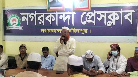ফরিদপুরের নগরকান্দা উপজেলা পরিষদ নির্বাচনে সম্ভাব্য ভাইস চেয়ারম্যান প্্রার্থী মাওলানা সোহরাব হোসেন সাংবাদিকদের সাথে মতবিনিময় করেছেন। শনিবার বিকালে নগরকান্দা প্্েরসক্লাব মিলনায়তনে নগরকান্দা প্্েরসক্লাবের সভাপতি মাহবুব আহাদের সভাপতিত্বে এবং সাংবাদিক শওকত আলী শরীফ এর সঞ্চালনায় মতবিনিময় সভায় উপস্থিত ছিলেন সরকারি এম এন একাডেমির সাবেক ভারপ্রাপ্ত প্রধান শিক্ষক এ কে এম সাইয়েদুর রহমান বাবলু,নগরকান্দা প্রেসক্লাবের সাবেক সভাপতি শামচুল হুদা হুদু,সরকারি নগরকান্দা কলেজের সাবেক ভারপ্রাপ্ত অধ্যক্ষ কাজী আফতাব হোসেন, ফরিদপুর জেলা আইনজীবী সমিতির প্রচার ও প্রকাশনা সম্পাদক অ্যাডভোকেট সরোয়ার হোসেন, মোঃ এনায়েত হোসেন,হাফেজ শাখাওয়াত হোসেন, নগরকান্দা প্রেসক্লাবের সাধারন সম্পাদক মাহফুজুর রহমান সহ নগরকান্দা প্রেসক্লাবের সদস্যবৃন্দ। মতবিনিময় সভায় মাওলানা সোহরাব হোসেন আসন্ন নগরকান্দা উপজেলা পরিষদ নির্বাচনে ভাইস চেয়ারম্যান পদে নিজের প্রার্থীতা ঘোষণা করে নগরকান্দা প্রেসক্লাবের সদস্যদের সর্বাত্মক সহযোগিতা কামনা করেন। তিনি আরো বলেন, নগরকান্দা উপজেলা বাসীর উন্নয়ন ও কল্যাণে নিজেকে নিয়োজিত করতেই ভাইস চেয়ারম্যান পদে নির্বাচন করার প্রস্তুতি নিয়েছি। মতবিনিময় সভা শেষে ইফতার পৃর্ব দোয়া মাহফিলে মোনাজাত পরিচালনা করেন মাওলানা নুরুল আমিন।