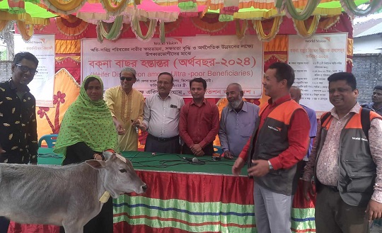 নারীর ক্ষমতায়ন ও সক্ষমতা বৃদ্ধির লক্ষ্যে নীলফামারীর কিশোরগঞ্জে ১৬০টি হতদরিদ্র পরিবারের মাঝে বকনা গরু বিতরণ করেছে ওয়াল্ড ভিশন বাংলাদেশ। বৃহস্পতিবার বিকালে বাহাগিলি ইউনিয়ন পরিষদে ৪১জন হতদরিদ্র নারীকে বকনা বাছুর গরু প্রদান করেন। এর আগে সদর ইউনিয়নে ৭২জন, চাঁদখানায় ২০জন ও নিতাই ইউনিয়নে ২৭জন সুবিধাভোগী নারীকে বকনা বাছুর দেওয়া হয়। এসময় উপস্থিত ছিলেন সাবেক উপজেলা মুক্তিযোদ্ধা কমান্ডার হাবিবুর রহমান হাবুল, ওয়াল্ড ভিশন কিশোরগঞ্জ এপি’র ব্যবস্থাপক পিকিং চাম্বুগং, সমাজসেবা কর্মকর্তা জাকির হোসেন ও সংশ্লিষ্ট ইউপি চেয়ারম্যানগণ।
