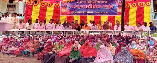 যশোরের ঝিকরগাছায় স্বেচ্ছাসেবী প্রতিষ্ঠান সেবা সংগঠন ৪ শতাধিক মানুষের মাঝে ঈদ সামগ্রী বিতরণ করেছে। রবিবার দুপুরে উপজেলার ঝিকরগাছা দারুল উলুম কামিল মাদ্রাসা মাঠে পুরস্কারপ্রাপ্ত সাহিত্যিক হোসেনের সভাপতিত্বে হতদরিদ্র বিধবা প্রতিবন্ধীদের মাঝে ঈদ সামগ্রী বিতরণ অনুষ্ঠিত হয়। সেবা সংগঠনের প্রতিষ্ঠাতা ও সভাপতি মাস্টার আশরাফুজ্জামান বাবুর সঞ্চালনায় প্রধান অতিথি ছিলেন গনপ্রজাতন্ত্রী বাংলাদেশ সরকারের বিদ্যুৎ জ্বালানি ও খনিজ সম্পদ মন্ত্রণালয়ের সাবেক অতিরিক্ত সচিব মীর আলি রেজা বকুল। অনুষ্ঠানে বিশেষ অতিথি ছিলেন, থানার অফিসার ইনচার্জ (ওসি) বিএম কামাল হোসেন ভুইঁয়া, উপজেলা সমাজসেবা অফিসার মেজবাহ উদ্দিন, নাগরিক অধিকার আন্দোলনের আহবায়ক মাস্টার নুর জালাল, সমন্বয়ক মাসুদুজ্জামান মিঠু, কোর কমিটির সদস্য আহসানউল্লাহ ময়না, সেবা সংগঠনের উপদেষ্টা মীর বাবরজান বরুণ, মীর ফারুক আহম্মেদ, সাদা মনের মানুষ সায়েদ আলী, আল এক্বরা মডেল একাডেমির প্রধান শিক্ষক আব্দুল্লাহ আল মুহিত, ইঞ্জিনিয়ার তানভির সোবাহান ইমন, এসকে ক্লিনিকের কর্ণধার ও সমাজসেবক হাবিবুর রহমান হাবিব, ঝিকরগাছা প্রেসক্লাব’র সহ সভাপতি আতাউর রহমান জসি, সেবা সংগঠন এর সহ সভাপতি আলীশাহ, যুগ্ম সাধারণ সম্পাদক আবুল কালাম আজাদ, অর্থ বিষয়ক সম্পাদক আফজাল হোসেন চাঁদ, কার্যকরী সদস্য আশিকুল ইসলাম, সদস্য শাহাবুদ্দিন মোড়ল, সুমন হোসেন, সুজন মাহমুদ, মাসুম বিল্লাহ, স্থানীয় সংবাদকর্মীবৃন্দ ও সেবা সংগঠনের বিভিন্ন পর্যায়ের নেতা এবং স্বেচ্ছাসেবকবৃন্দ।