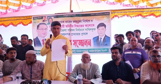 ব্রাহ্মণবাড়িয়ার সরাইল উপজেলা পরিষদ নির্বাচন থেকে সরে দাঁড়ানোর ঘোষণা দিয়েছেন চেয়ারম্যান পদ প্রার্থী উপজেলা বিএনপি’র সাধারণ সম্পাদক অ্যাডভোকেট নুরূজ্জামান লস্কর তপু। রোববার সকাল সাড়ে ১১টার দিকে সরাইল সদরের কেন্দ্রিয় শহিদ মিনার চত্বরে উপজেলা বিএনপি’র সভাপতি আনিছুল ইসলাম ঠাকুরের সভাপতিত্বে অনুষ্ঠিত এক সংবাদ সম্মেলনে তিনি এই ঘোষণা দিয়েছেন। এ সময় উপজেলা বিএনপি’র সাংগঠনিক সম্পাদক ডি এম দুলালসহ উপজেলা, ইউনিয়ন ও ওয়ার্ড পর্যায়ের দলীয় নেতা কর্মীরা উপস্থিত ছিলেন। দেশ নায়ক তারেক রহমানের নির্দেশে ও বিএনপি’র কমিটির সিদ্ধান্তের আলোকে সরে দাঁড়িয়েছেন তিনি। মনোনয়ন জমা দেওয়া বিএনপি’র অপর নেতা কর্মীরাও দলকে ভালবেসে হাই কমান্ডের নির্দেশ বাস্তবায়নে অতি দ্রƒতই অবৈধ এই সরকারের ডামি নির্বাচন থেকে সরে দাঁড়াবেন বলে জানান তিনি। নতুবা দল তাদের বিরূদ্ধে ব্যবস্থা করবেন। সূত্র জানায়, আসন্ন উপজেলা পরিষদ নির্বাচনে এড. তপু মনোনয়নপত্র জমা দিয়ে হয়েছেন। তাঁর মনোনয়নপত্র বৈধ ঘোষণা করেছেন রিটর্নিং কর্মকর্তা। আগামীকাল সোমবার মনোনয়নপত্র প্রত্যাহার করার তারিখ। একদিন আগেই আজ তিনি সংবাদ সম্মেলন ডেকে আনুষ্ঠানিকভাবে মনোনয়নপত্র প্রত্যাহার করে নির্বাচন থেকে সরে দাঁড়ানোর ঘোষণা দিলেন। সংবাদ সম্মেলনে লিখিত বক্তব্যে তপু বলেন, অবৈধ এই সরকারকে ক্ষমতা থেকে সরানোর জন্য রাজপথে আন্দোলন করছেন বিএনপি। এই সরকারের পাতানো ও ডামি নির্বাচনে অংশ গ্রহনও করছেন না দলটি। তাই দেশ নায়ক তারেক রহমানের দির্দেশে বিএনপির স্থায়ী কমিটির সিদ্ধান্তে আমার ব্যাপক জনপ্রিয়তা থাকা সত্বেও নির্বাচন থেকে সরে দাঁড়ালাম। আল্লাহর রহমতে আমি অনেকটা নিশ্চিত এবারের নির্বাচনে আমি জয়লাভ করতাম। কিন্তু ব্যক্তির চেয়ে দল বড়। তাই দলের সিদ্ধান্তকে আমি মাথা পেতে মেনে নিয়েছি। সরাইল বিএনপি ও দলটির অঙ্গ সংগঠনের কোন নেতা কর্মী এই সরকারের ডামি নির্বাচনের দিন ভোট কেন্দ্রেও যাবেন না। আমরা অবৈধ সরকারকে খটানোর আন্দোলনে রাজপথে আছি। রাজপথেই থাকব। এক প্রশ্নের জবাবে তপু বলেন, যারা বিএনপি পরিবারের সদস্য। যারা বিএনপিকে মনে প্রাণে ভালবাসেন। তারা অবশ্যই দলের সিদ্ধান্ত মেনে নির্বাচন থেকে সরে দাঁড়াবেন। সরে না দাঁড়ালে বুঝতে হবে তারা দলের কেউ না। তাদের বিরূদ্ধে অবশ্যই দলীয় ব্যবস্থা গ্রহন করা হবে। সভাপতি আনিছুল ইসলাম ঠাকুর বলেন, সরাইলের মাটি বিএনপি’র ঘাটি। এই ঘাঁটি থেকে বিএনপি’র সত্যিকারের কোন নেতা কর্মী ৮ই মের নির্বাচনে অংশগ্রহণ করতে পারেন না। এমনকি ওই দিন দলের কোন লোক ভোট কেন্দ্রেও যাবেন। যে কেন্দ্রে ভোট বেশী কাষ্ট হবে বুঝে নিতে হবে ওই কেন্দ্রে বিএনপি’র লোকজন ভোট দিয়েছে। ওই ওয়া