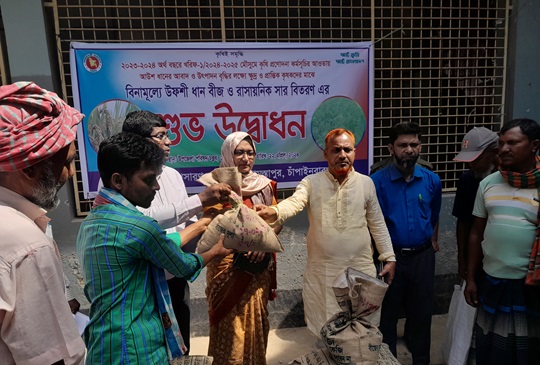 উল্লেখ্য, ২০২৩-২৪ অর্থ বছরে খরিফ ১/২০২৪-২৫ মৌসুমে কৃষি প্রণোদনা কর্মসূচীর আওতায় আউস ধানের আবাদ ও উৎপাদন বৃদ্ধির লক্ষ্যে ৬ হাজার ৫০০ জন ক্ষুদ্র ও প্রান্তিক কৃষকদের মধ্যে বিনামূল্যে উফসী ধানের বীজ ও রাসায়নিক সার বিতরণ করা হচ্ছে।