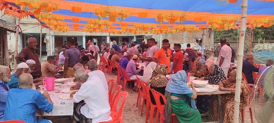 কলারোয়ায় ঈদের দিন দুম্বার গোস্ত দিয়ে ১৪ গ্রামের সাড়ে ৪শ বয়স্ক নারী-পুরুষকে দাওয়াত করে খাওয়ালেন উপজেলার হেলাতলা ইউনিয়ন পরিষদের জনপ্রিয় ইউপি চেয়ারম্যান মোয়াজ্জেম হোসেন। তিনি তার বাস ভবনে একটি প্যান্ডে করে ওই বয়স্ক নারী-পুরুষকে চিঠি দিয়ে দাওয়াত করেন। তারা বয়স্ক হওয়ায় চলাফেরা করতে না পারায় চেয়ারম্যান মোয়াজ্জেম হোসেন ইজিবাইক নিয়ে প্রত্যেকের বাসায় যান এবং তাদের গাড়িতে করে নিয়ে আসেন। খাওয়া দাওয়া শেষে কুশোল বিনিময় করে আবারও তাদের প্রত্যেকের বাসায় নিয়ে রেখে আসেন। এ বিষয়ে ৯নং হেলাতলা ইউনিয়ন পরিষদের বার বার নির্বাচিত জনপ্রিয় ইউপি চেয়ারম্যান মোয়াজ্জেম হোসেন বলেন-দীর্ঘ দিনের আসা ছিলো তার ইউনিয়নের বয়স্ক নারী-পুরুষদের দাওয়াত করে খাওয়ানোর। কিন্তু সময়ের কারণে তা হয়নি। এবার তার ছোট ভাই ব্যবসায়ী ইমাম হোসেনের উদ্যোগে বাড়ীতে ঈদের দিন দুম্বা কোরবানি দিয়ে সেই মাংস রান্না করে ১৪ গ্রামের বয়স্ক নারী ও পুরুষকে খাওয়ানো হয়।
