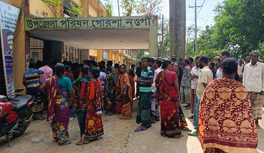নওগাঁর পোরশায় ছাওড় ইউপি চেয়ারম্যান মোস্তাফিজুর রহমান ও ওয়ার্ড সদস্য হাবিবুর রহমানের বিচারের দাবিতে আদিবাসী নারী-পুরুষরা উপজেলা চত্বরে বিক্ষোভ সমাবেশ করেছেন। জমিজমা সংক্রান্ত বিরোধের জেরে ছাওড় ইউপি চেয়ারম্যান কর্তৃক দানিপুকুর সাধু পোল উচ্চবিদ্যালয়ের বিকাশ বারোয়ার নামে এক আদিবাসী সহকারি শিক্ষককে মারপিটের জেরে বুধবার বিকালে ওই বিক্ষোভ সমাবেশ করা হয়েছে বলে জানাগেছে। জানাগেছে, ছাওড় ইউনিয়ন পরিষদ চেয়ারম্যান মোস্তফিজুর রহমান ও ওয়ার্ড সদস্য হাবিবুর রহমান ৩০ জুন দুপুরে জমিজমা সংক্রান্ত বিষয়কে কেন্দ্র করে বিকাশ বারোয়ার নামে এক আদিবাসী শিক্ষককে মারধর করেন। এতে তিনি আহত হয়ে হাসপাতালে ভর্তি হন। পরে বিকাশ বারোয়ার সুস্থ্য হয়ে উঠেন। এ বিষয়ে উপজেলা নির্বাহী অফিসার আরিফ আদনান জানান, বুধবার বিকালে বিকাশ বারোয়ার তার সাথে দেখা করতে আসেন। এ সময় তিনি চেয়ারম্যান মোস্তাফিজুর রহমানকে ডেকে বিকাশকে মারধরের বিষয়ে বক্তব্য শোনার একপর্যায়ে প্রায় শতাধীক আদিবাসী নারী-পুরুষ এসে চেয়ারম্যানের বিচারের দাবিতে বিক্ষোভ করতে শুরু করেন। এ সময় তারা চেয়ারম্যানকে উঠে নিয়ে যাওয়ার ও লাঞ্চিত করার চেষ্ঠা করলে তিনি তাদের থামানোর চেষ্ঠা করেন। এর আগে তিনি বিকাশ বারোয়ারকে মারধরের একটি অভিযোগপত্র পেয়েছিলেন বলে জানান। এ ঘটনায় খাদ্যমন্ত্রী সাধন চন্দ্র মজুমদারের হস্তক্ষেপে সুষ্ঠ বিচারের আশ^াসে বিক্ষোভকারীরা সন্ধার আগে নিজনিজ বাড়িতে ফিরে জান বলে তিনি জানান। অপরদিকে, বুধবার সন্ধার আগে ছাওড় ইউপি চেয়ারম্যান মোস্তাফিজুর রহমান, ওয়ার্ড সদস্য হাবিবুর রহমান, সেলিম ও হাপিনুর রহমান সহ আরো ৪/৬জনকে আসামি করে বিকাশ বারোয়ার পোরশা থানায় এজাহার দায়ের করেছেন বলে সংশ্লিষ্টরা জানান।
