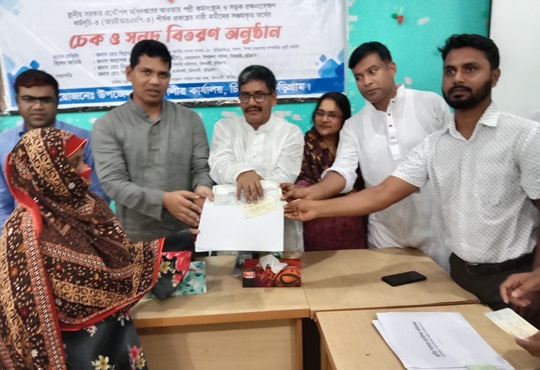 কুড়িগ্রামের চিলমারীতে স্থানীয় সরকার প্রকৌশল অধিদপ্তরের আওতায় পল্লী কর্মসংস্থান ও সড়ক রক্ষণাবেক্ষণ কর্মসূচি-৩ (আরইআরএমপি-৩) শীর্ষক প্রকল্পের সুবিধা ভোগী নারী কর্মীদের সঞ্চয়কৃত অর্থ চেক ও সনদ প্রদান করা হয়েছে। সোমবার সকালে উপজেলা পরিষদ সভাকক্ষে এসব চেক ও সনদ বিতরণ করেন কুড়িগ্রাম-৪ আসনের জাতীয় সংসদ সদস্য অ্যাডভোকেট বিপ্লব হাসান পলাশ।