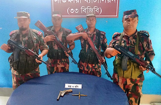 সাতক্ষীরা ব্যাটালিয়ন (৩৩ বিজিবি) অধিনায়ক কর্নেল মোঃ আশরাফুল হক জানান, গোয়েন্দা তথ্যের ভিত্তিতে জানতে পারি, তলুইগাছা সীমান্ত দিয়ে ভারত থেকে বাংলাদেশে অস্ত্র পাঁচারের হবে। সেই তথ্যের ভিত্তিতে অভিযানিক দল তাদের ধাওয়া করে রাতের অন্ধকারে ঘন বন দিয়ে অস্ত্র ও গোলাবারুদ রেখে চোরাকারবারীরা পালিয়ে যায়। যার আনুমানিক মূল্য দশ হাজার আটশত টাকা।